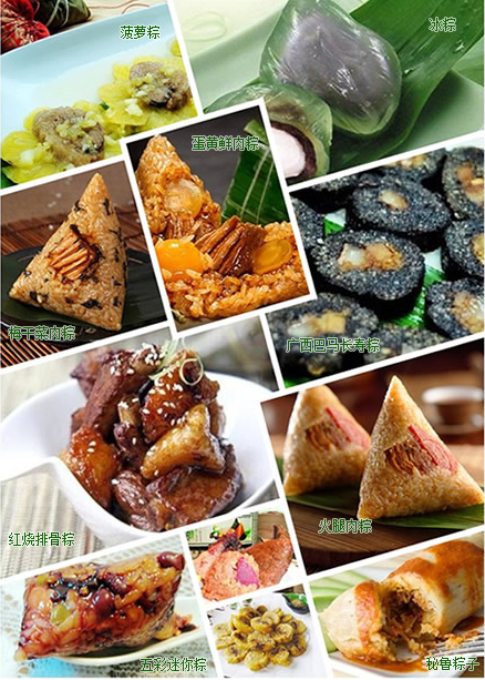 如今的粽子更是多種多樣,璀璨紛呈?,F(xiàn)今各地的粽子,一般都用箬殼包糯米,但內(nèi)含的花色則根據(jù)各地特產(chǎn)和風俗而定,著名的有桂圓粽、肉粽、水晶粽、蓮蓉粽、蜜餞粽、板栗粽、辣粽、酸菜粽、火腿粽、咸蛋粽等等。