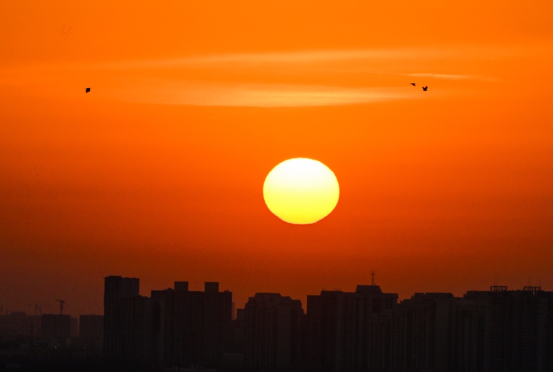 2025年1月1日在北京市區(qū)拍攝的日出景象。新華社記者 陳曄華 攝