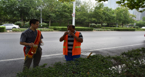一、高溫送清涼,義務(wù)送水活動(dòng)。近日,持續(xù)的高溫席卷鄭州。即使是這樣的高溫天氣,環(huán)衛(wèi)工人仍頭頂烈日,堅(jiān)守在高溫一線,確保轄區(qū)內(nèi)整潔有序、干凈衛(wèi)生。7月14日上午,市建投公司黨員志愿者自備祛暑茶水,帶著水壺、水杯,慰問了酷暑中仍然堅(jiān)守在一線的鄭東新區(qū)環(huán)衛(wèi)工人,為他們送上了夏季“解渴水”,感謝高溫下堅(jiān)守崗位的他們?yōu)榄h(huán)衛(wèi)工作所付出的辛苦和汗水,并叮囑大家一定要加強(qiáng)防暑措施,注意安全。此次活動(dòng),不僅在這個(gè)夏天為一線環(huán)衛(wèi)人員送來(lái)了清涼,更彰顯了來(lái)自企業(yè)的愛心和責(zé)任。
