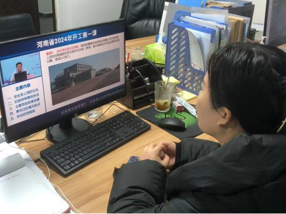 為認真貫徹習近平總書記關于安全生產(chǎn)重要指示精神,全面落實黨中央、國務院和省委、省政府決策部署,切實做好春節(jié)后復工復產(chǎn)企業(yè)的安全生產(chǎn)工作,有效杜絕準備不充分、員工精神狀態(tài)不佳、設備故障運行、安全管理不到位等問題引發(fā)的生產(chǎn)安全事故,確保復工復產(chǎn)安全, 全面恢復現(xiàn)場施工,保證項目施工進度,壓實項目、監(jiān)理、總分包管理責任。建投集團2月28日上午按照省、市安委會及城發(fā)集團統(tǒng)一要求,組織控股公司、項目部留守人員及施工、監(jiān)理單位共計129人統(tǒng)一收看“河南省 2024 年開工第一課講安全”專題講座直播和安全生產(chǎn)責任在肩安全生產(chǎn)警示教育片。