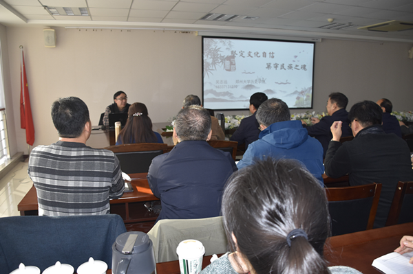 吳教授以《堅定文化自信,筑牢民族之魂》為題,圍繞文化自信的含義、牢牢掌握意識形態(tài)工作領(lǐng)導權(quán)、培育和踐行社會主義核心價值觀、繁榮發(fā)展社會主義文藝等四個方面進行了專題輔導。他認為文化自信是一個民族、一個國家以及一個政黨對自身文化價值的充分肯定和積極踐行,并對其文化的生命力持有的堅定信心。他歸納出讓中國人“自信”的“文化”,至少包括三個層面:中華優(yōu)秀傳統(tǒng)文化、革命文化、社會主義先進文化。當前我們面臨的挑戰(zhàn)和困難前所未有,境內(nèi)外敵對勢力插手意識形態(tài)斗爭的情況越來越復(fù)雜,形勢越來越嚴峻,多種勢力聯(lián)手,通過網(wǎng)絡(luò)、新媒體等各種手段,妄圖摧毀中國人的自信和共產(chǎn)黨的執(zhí)政根基。我們要按照習總書記的要求,堅持黨管意識形態(tài)原則不動搖,進一步堅定共產(chǎn)主義理想信念,從我做起,從現(xiàn)在做起,在意識形態(tài)斗爭中做到對黨忠誠、個人干凈、敢于擔當,對一些意識形態(tài)的挑戰(zhàn)要敢于亮劍。