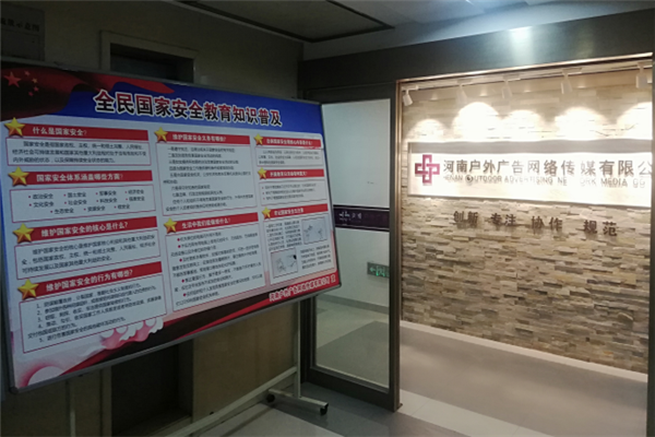 三、豐富活動(dòng)形式,營造濃厚氛圍。集團(tuán)公司有效運(yùn)用集團(tuán)公司官方網(wǎng)站、微博、微信、展板等集中宣傳國家安全教育活動(dòng)相關(guān)內(nèi)容,在辦公場(chǎng)所明顯位置設(shè)立宣傳展板三塊,廣泛宣傳國家安全相關(guān)法律法規(guī)和維護(hù)國家安全的基本知識(shí),營造了良好的活動(dòng)氛圍,不斷提高活動(dòng)的影響力;各項(xiàng)目部、各控股公司分別結(jié)合實(shí)際,通過宣傳展板、宣傳條幅、電子海報(bào),LED大屏循環(huán)、施工圍擋等多途徑宣傳國家安全教育活動(dòng),全面覆蓋集團(tuán)全體職工、承建項(xiàng)目全體參建人員。本次宣傳有效覆蓋人數(shù)達(dá)到2000余人。