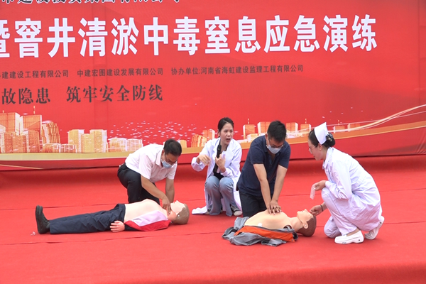 五是開展應急演練活動。6月23日下午,集團公司市政建設管理中心在杏賈路市政道路施工現場開展一次窨井中毒窒息應急救援演練活動,參加人員共計100余人,涉及公司所有在建市政工程項目參建單位。演練模擬污水井清淤作業(yè)意外中毒為背景展開,并邀請鄭大一附院兩名專家進行急救知識講解和心肺復蘇教學,取得了非常好的效果